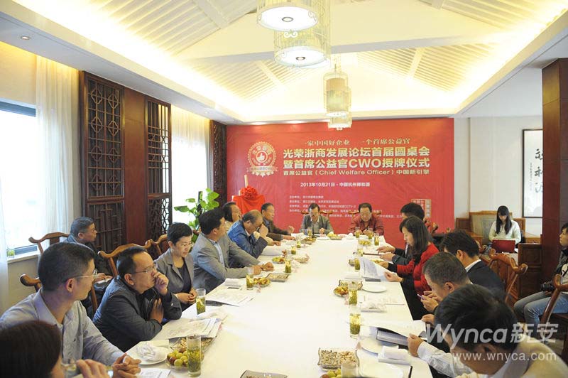 ,由《浙江日报》主办、以“首席公益官,中国新引擎”为主题的“光荣浙商发展论坛”首届圆桌会在杭州召开。王伟董事长出席会议并发言。