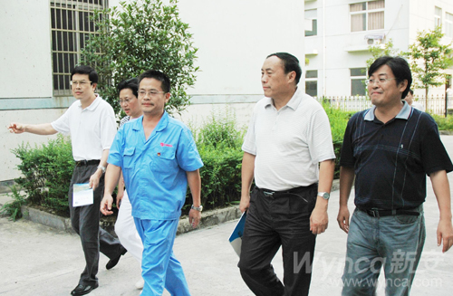 8月17日,中共浙江省委第三巡视组到开化县开展巡视工作,巡视组组长邬金水(右二)一行在开化县县长金明(右一)的陪同下,到开化元通公司进行实地考察。