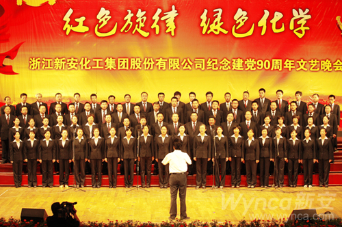 “锦绣江南有一条新安江,美丽的新安江啰!新安江畔有一座化工城,绿色的化工城……”6月29日晚上,公司领导王伟、季诚建、潘秋友、刘侠、林加善、任不凡、姜永平、包雪传等带领公司机关员工组成的合唱团,高声歌唱《新安化工之歌》,拉开了公司庆祝中国共产党建党90周年“红色旋律 绿色化学”红歌主题晚会的序幕。在晚会现场还举办了公司为纪念“双童”烈士组织党员缴纳特殊党费的捐赠仪式。