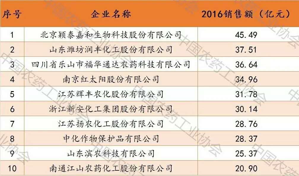 5月10日上午,2017中国农药行业销售百强企业榜单在第四届农药行业经济运行分析会暨农药行业排行榜发布会上隆重发布,新安集团以30.14亿元的销售额位居第六名。