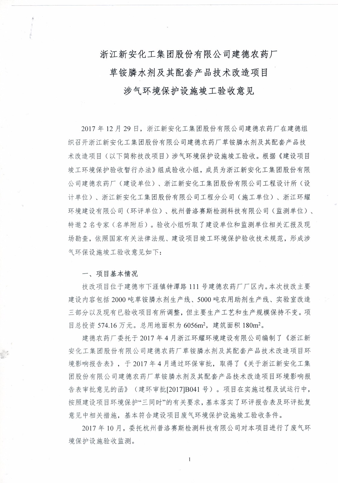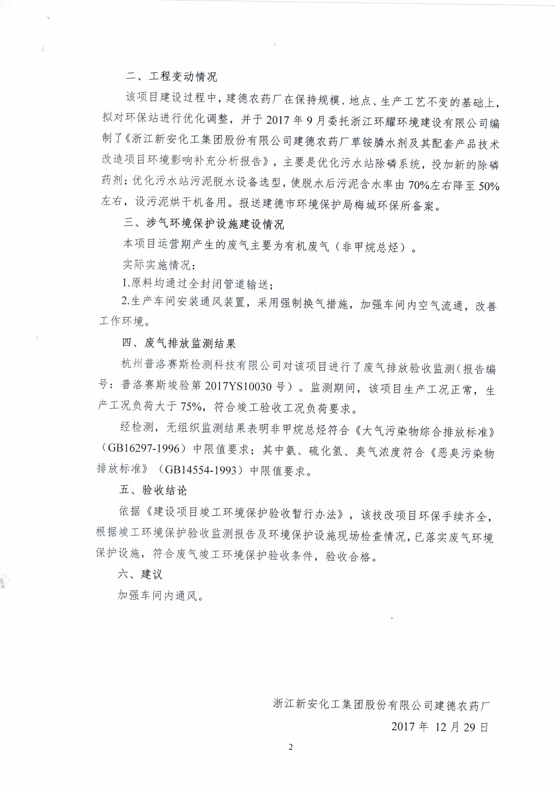 新安化工集团股份有限公司建德农药厂草铵膦水剂及其配套产品技改项目进入验收公示