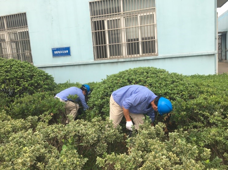 由于今年公司项目建设,外来人员较多,现场相对零乱,绿化区域垃圾现象严重,有饮料瓶、餐巾纸、废切割片、皮圈、破手套、棍子等,真可谓五花八门样样有。经过一个半小时,7名党员完成了绿化区域的大扫除,虽然一个个满头大汗,手脏了,衣服脏了,但看到厂区绿化区恢复了原来的干净,大家心里都露出了笑容。